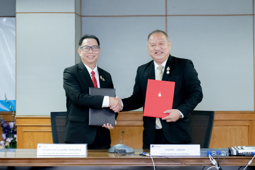 The Council of Presidents of the Rajamangala University of Technology (RMUT) system organized a signing ceremony for a Memorandum of Understanding (MOU) between the nine Rajamangala Universities of Technology (RMUTs) and vocational education institutes. The ceremony was attended by Mr.Yospol Wenu-Koset, Secretary-General of the Vocational Education Commission; Assoc.Prof.Dr.Udomvit Chaisakulkiet, President of Rajamangala University of Technology Rattanakosin and Chair of the Council of RMUT Presidents; Dr.Natworapol Rachsiriwatcharabul, President of Rajamangala University of Technology Phra Nakhon; as well as the presidents of the other seven RMUT institutions, including RMUT Thanyaburi, RMUT Bangkok, RMUT Eastern, RMUT Lanna, RMUT Srivijaya, RMUT Suvarnabhumi, and RMUT Isan, along with directors of vocational education institutes. The signing took place at RMUT Phra Nakhon (Bangkok Commercial Campus) on 22 September 2025. The MOU aims to enhance the capabilities and academic strength of vocational education, provide professional academic services, and collaboratively develop curricula, research, academic services, and teaching that align with the needs of employers. It also seeks to drive the credit bank system, including credit transfer mechanisms, allowing students to register across institutions. This initiative opens opportunities for students to continue their studies at RMUT universities. Emphasis is placed on short-term (non-degree) programs and lifelong learning, which are considered essential for elevating the competencies of the future workforce.