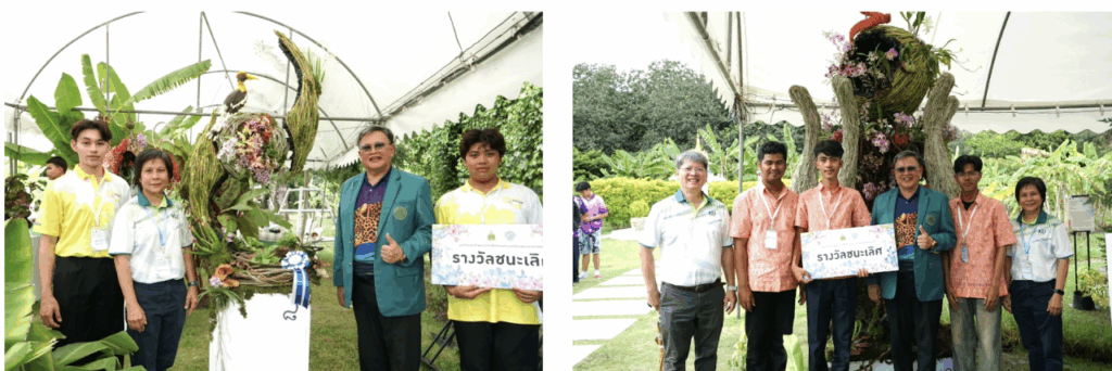 Students and alumni of the Faculty of Home Economics Technology won first place in the Orchid Arrangement Competition for the Her Majesty Queen Sirikit Royal Trophy.