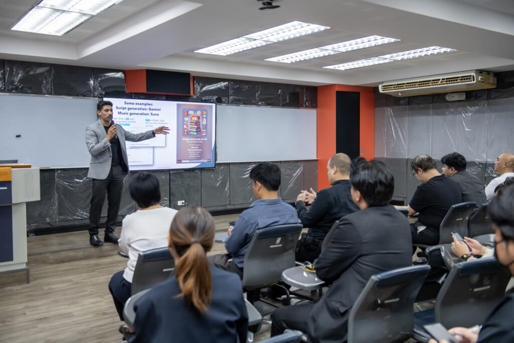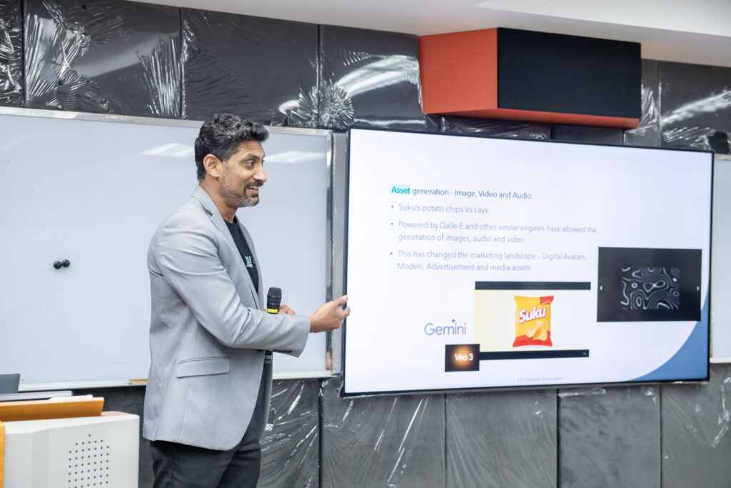 To showcase AI’s current capabilities, Assoc. Prof. Sukunesan demonstrated the creation of animated advertising videos in seconds and used the Suno application to compose music instantly.
