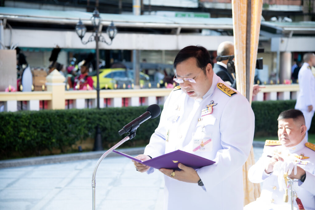 Lieutenant General Chainarong Kitrungrojcharoen,, Vice President of the University Council, acting on behalf of the President of the Council, delivered a speech stating, “On behalf of the University Council of Rajamangala University of Technology Phra Nakhon, we are profoundly grateful for His Serene Highness’s gracious presence in presiding over the opening of the Monument Plaza of His Royal Highness Prince Rabi of Ratchaburi (Krom Luang Ratchaburi Direkrit) and inaugurating the Royal Celebration Project in honor of His Majesty King Vajiravudh (King Rama VI) and Her Royal Highness Princess Petcharat Rajasuda Sirisopaphannawadee. This occasion is a great honor for Rajamangala University of Technology Phra Nakhon and a mark of immense royal benevolence toward the university’s administrators, faculty, staff, and students.”