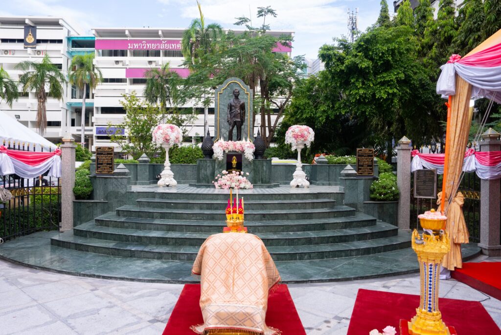 “On the auspicious occasion of the 150th anniversary of the birth of His Royal Highness Prince Rabi Bhadanasakdi, the Prince of Ratchaburi Direkrit (October 21, 2024), RMUTP, in collaboration with the Rapeepat Royal Family, has organized a series of commemorative activities throughout 2025. The university has also undertaken the renovation of the existing monument courtyard to create a new design, reorienting the monument to face Samsen Road, improving the surrounding landscape, and constructing a new university gate as a memorial for this significant occasion. The project began in 2023 and was completed in January 2025.”