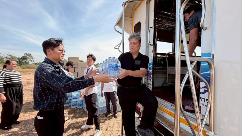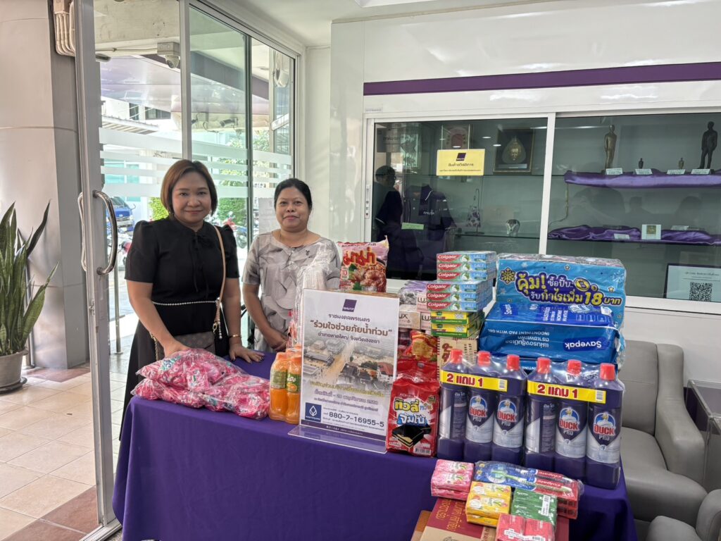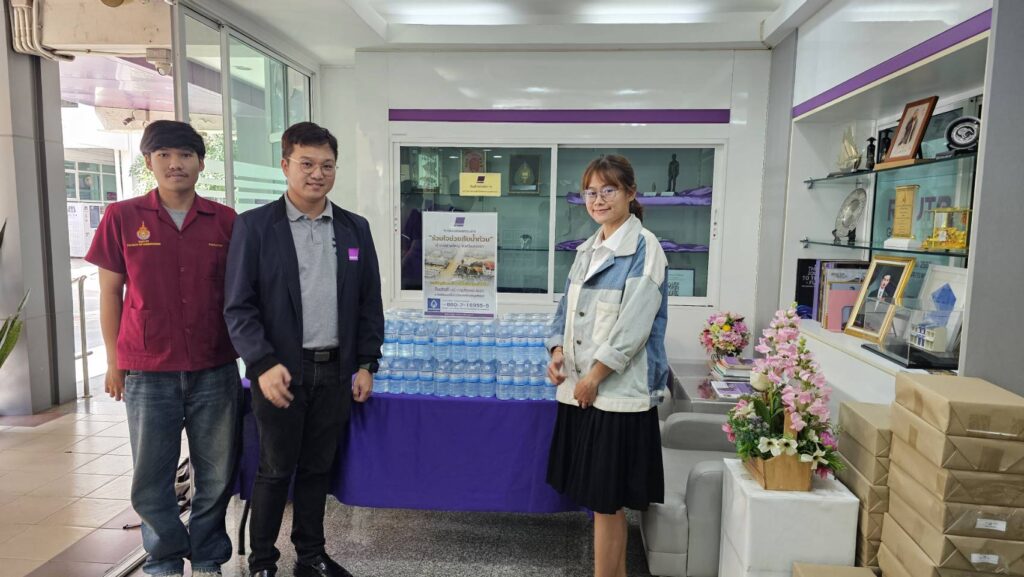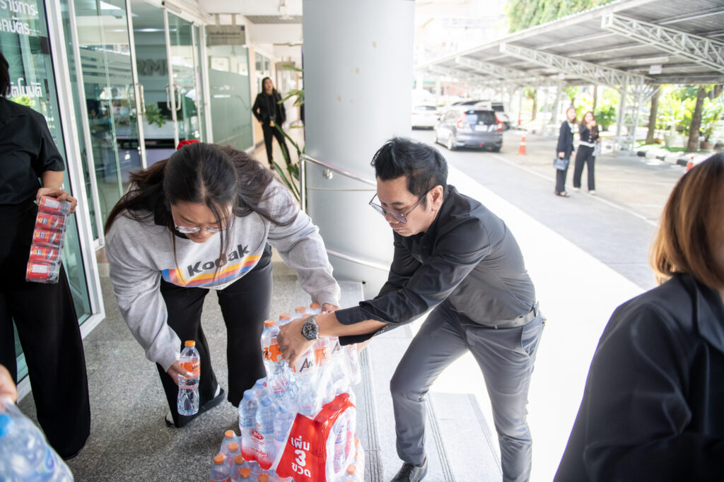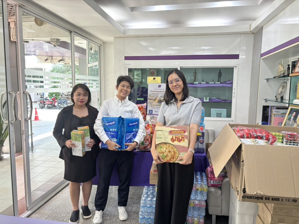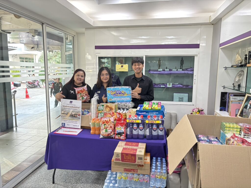 Following the University’s donation campaign to collect essential relief items—such as rice, dry food, instant noodles, canned fish and canned food, sanitary pads, soap, and toothpaste—a large number of staff members contributed generously. Most recently, a representative from CMY Commerce Co., Ltd. donated 400 T-shirts in assorted sizes, approximately 50 pairs of short and long trousers, as well as around 100 pieces of men’s and women’s underwear. On this occasion, Mr.Bundit Panraksa, President of the Alumni Association of Rajamangala University of Technology Phra Nakhon, acting as the University’s representative, delivered the donated consumer goods to flood victims in southern Thailand through the Thamdee Organization Foundation. In addition, the monetary donations collected were presented to Rajamangala University of Technology Srivijaya to further support flood relief efforts.
