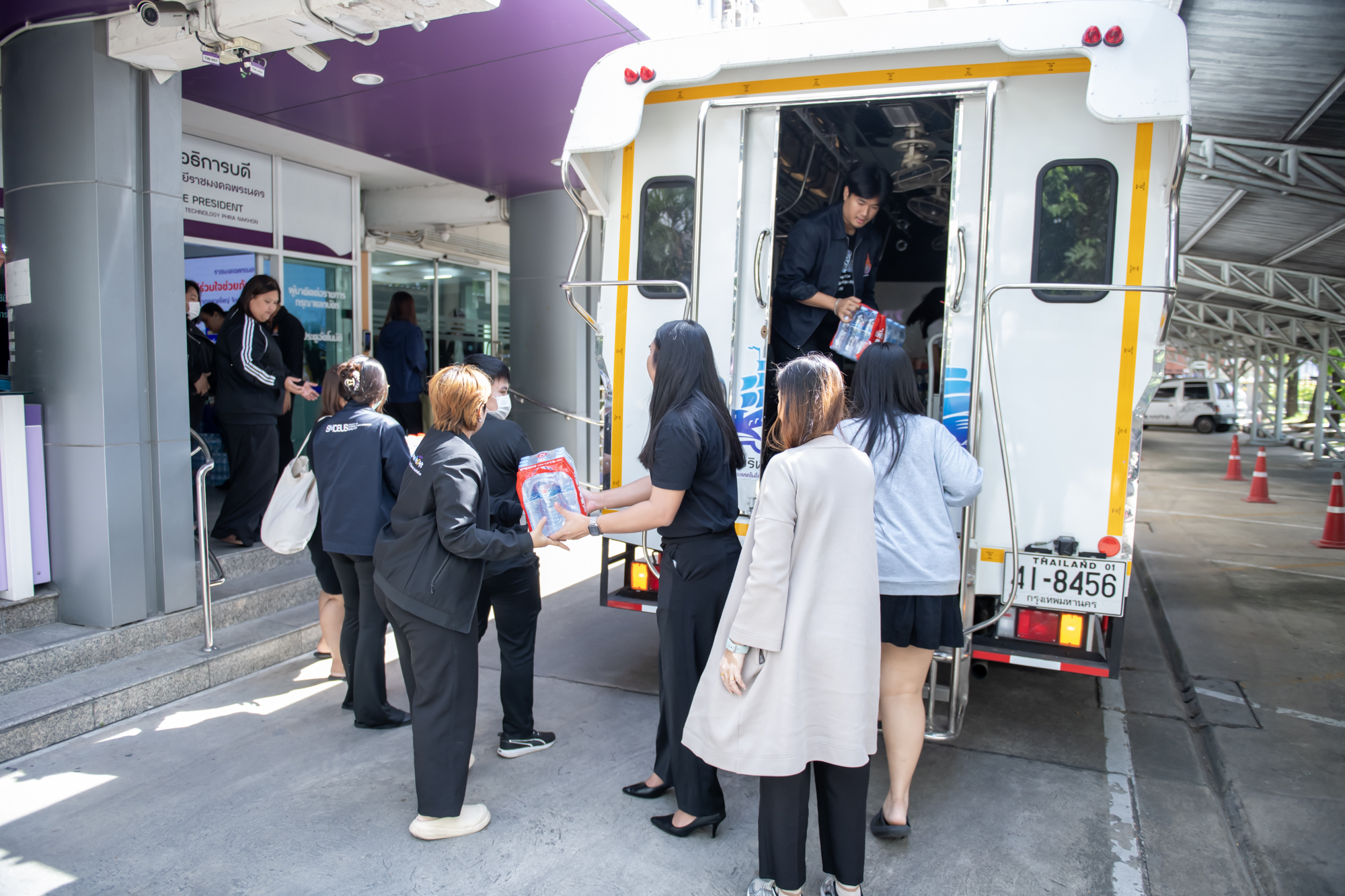 Mr.Bundit Panraksa, President of the Alumni Association of Rajamangala University of Technology Phra Nakhon (RMUTP), received donated items from Mr.Somsak Phornsuwannapa, President of the Phra Nakhon Commercial College Alumni Association. The donations were collected from a public donation drive organized by the Faculty of Business Administration, as well as from donations received by Rajamangala University of Technology Phra Nakhon at Thewet Campus. The donation handover took place in front of the Raphiphatthanasil Building at RMUTP, Thewet Campus, on 28 November 2025.