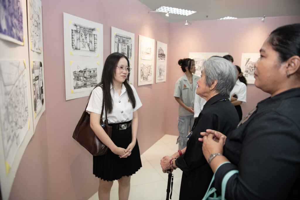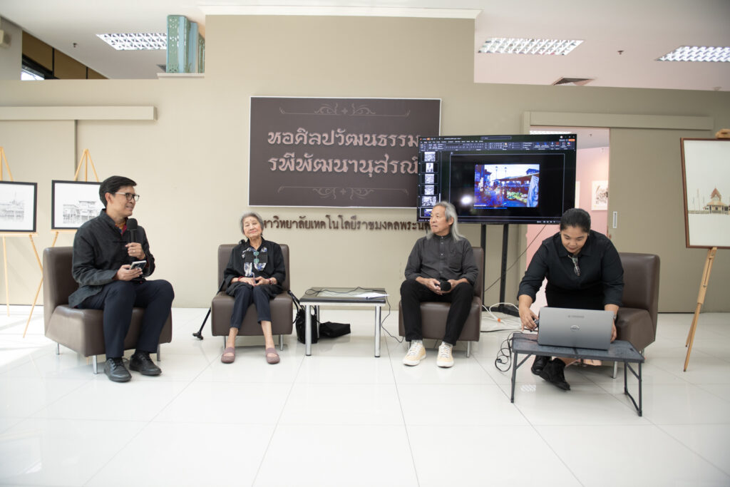 In addition to the discussion, the event showcased an exhibition of local architectural drawings featuring the Thewet community. These artworks, created by students from the Faculty of Architecture and Design, RMUTP, beautifully captured the district’s historical charm through diverse perspectives.