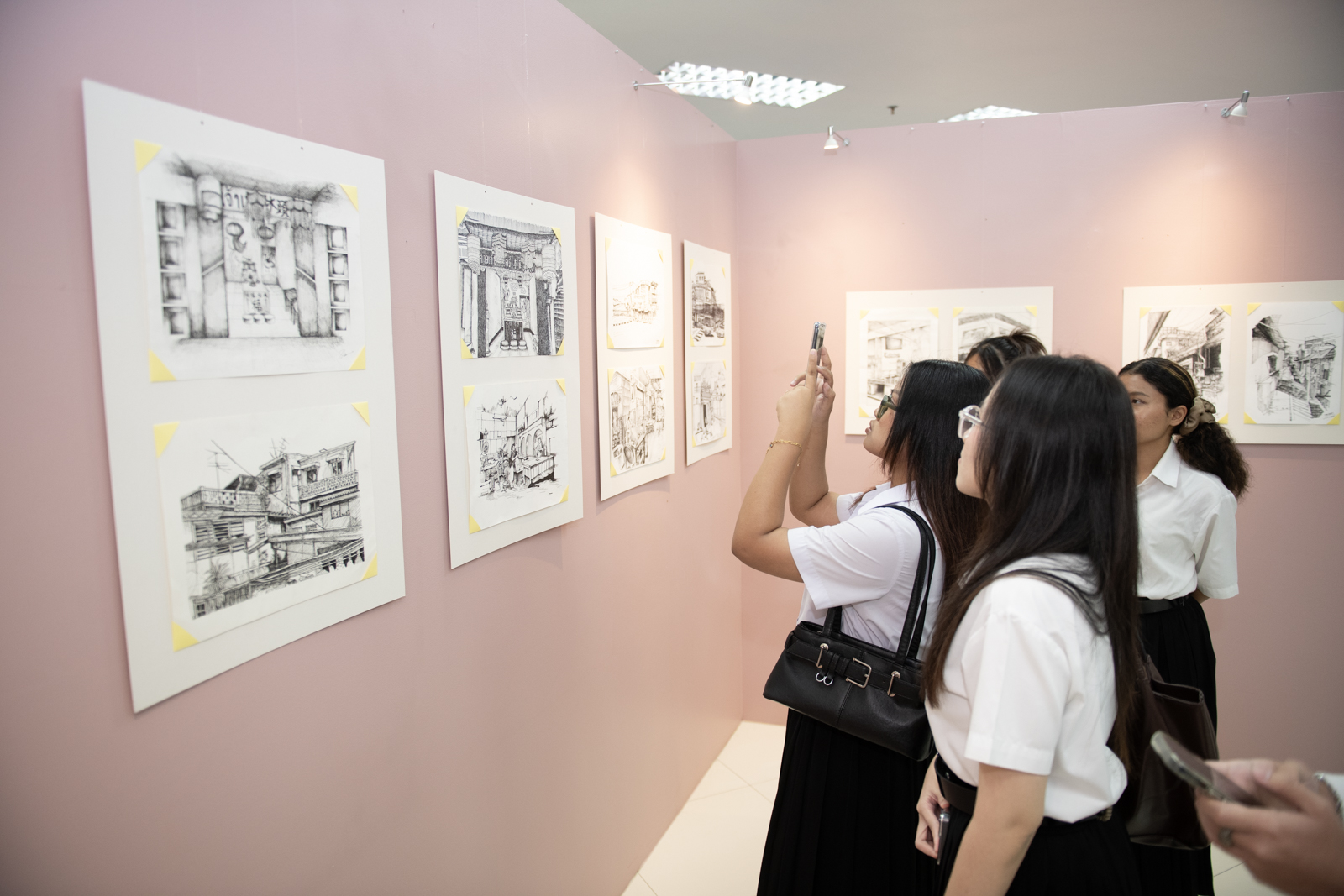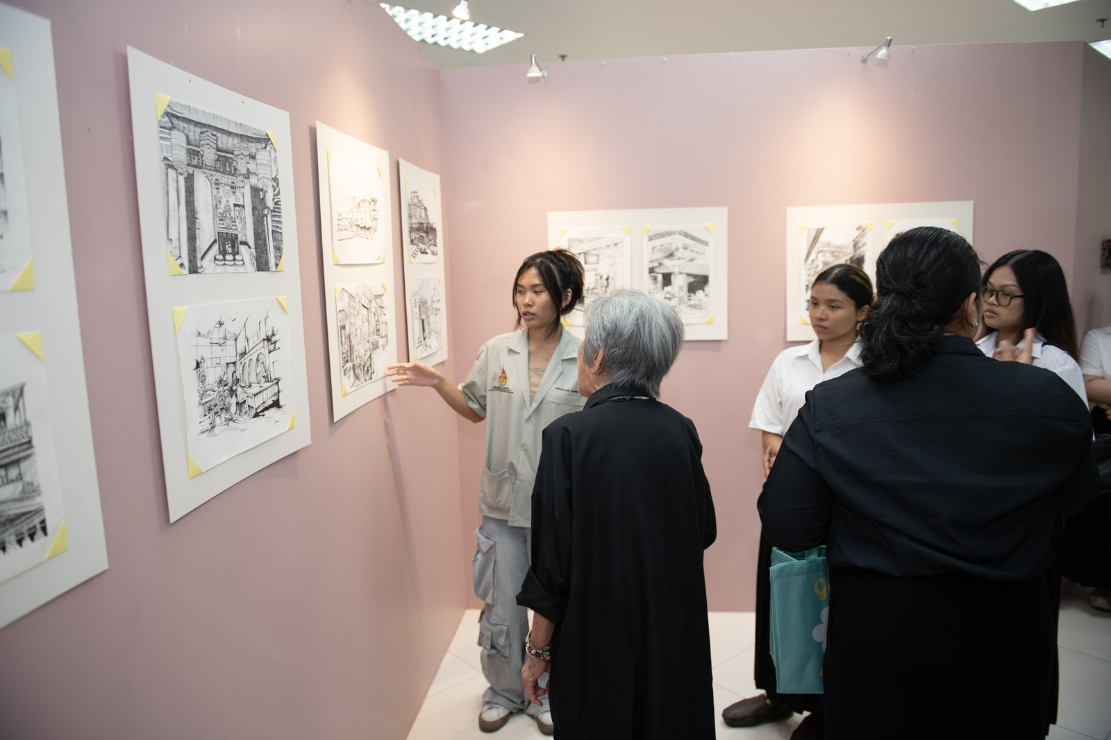 Dr.Natworapol Rachsiriwatcharabul, Acting President of RMUTP, presided over the opening ceremony and emphasized that the preservation of arts and culture is a core mission of the university. “RMUTP is committed to encouraging our personnel and students to engage in the study, research, and hands-on practice of cultural preservation,” said Dr.Natworapol. “This exhibition of student drawings not only highlights the aesthetic beauty of the Thewet community’s architecture but also reflects the multi-dimensional history and local wisdom that we must cherish and sustain.”