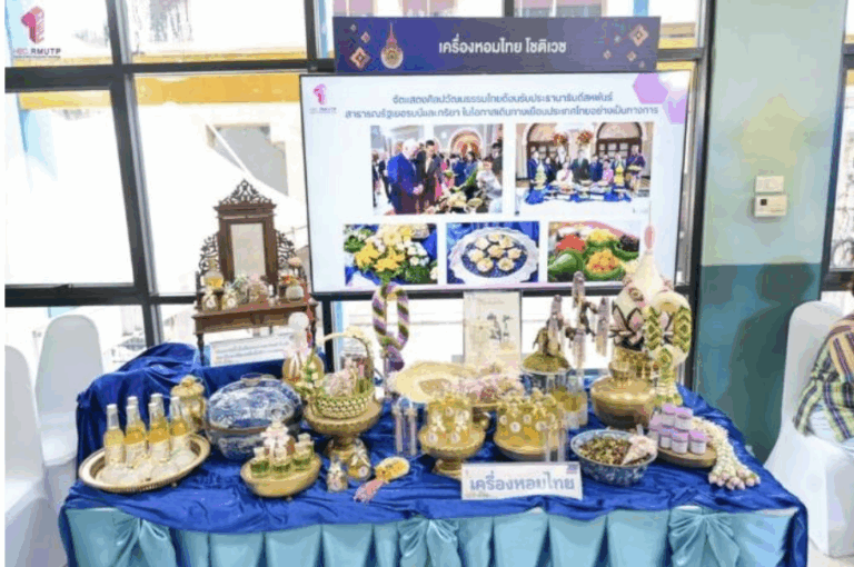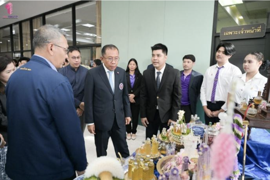 On May 14, 2025, at “The Kingdom of Flavors: Igniting the Future of Global Tourism and Hospitality,” RMUTP proudly showcased a live exhibition of traditional Thai scented food products, crafted using locally sourced plant ingredients. Led by the Faculty of Home Economics Technology, the exhibition demonstrated how culinary heritage and food-based biodiversity are being preserved and promoted through hands-on educational and cultural activities.
