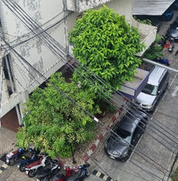 A planted back courtyard and the small garden in front of In front the faculty of Mass Communication Technology building at Thewet Campus, covering 24.33 m² and 56.33 m²