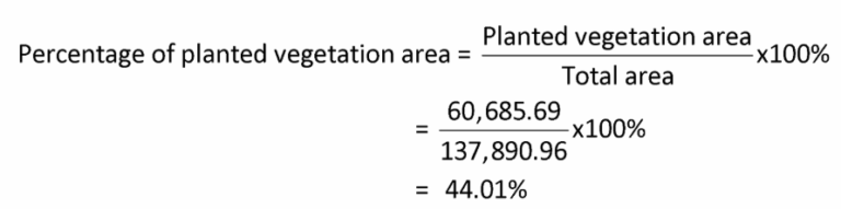 The percentage of planted vegetation area can be seen in the table 1.3 In addition, the calculation of planted vegetation area’s percentage can be found below.