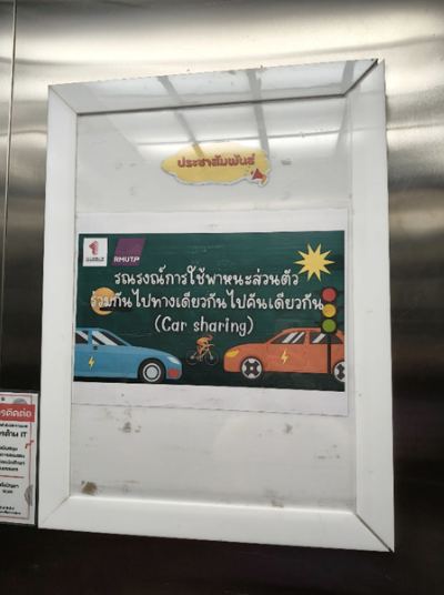 - Promotion of Public and Alternative Transportation: RMUTP encourages the use of public transport, bicycles, and walking. Additionally, the university has initiated a Car Sharing Program to promote more efficient use of vehicles among staff and faculty. This initiative aims to reduce the number of vehicles entering the campus while fostering a culture of shared responsibility for the environment.