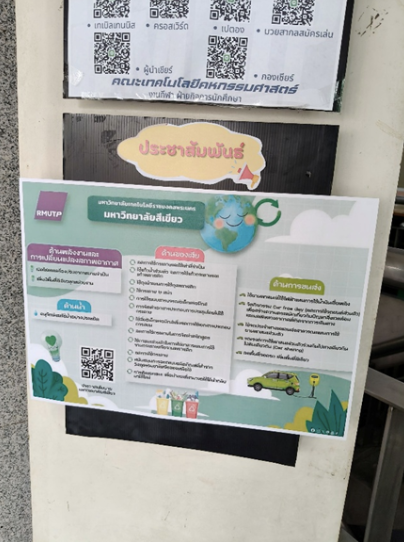 Moreover, RMUTP benefits from excellent access to public transportation infrastructure, including buses, trains (BTS/MRT), and other transit options. These allow students, faculty, and staff to conveniently travel to and from campus, reducing the need for university-operated shuttle systems and encouraging the use of low-emission public transport.