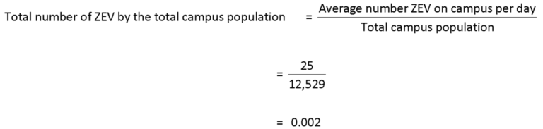 The total number of Zero-Emission Vehicles (ZEV) divided by the total campus population : 0.002