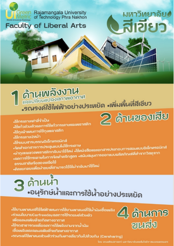 As outlined in Section 3.7, Rajamangala University of Technology Phra Nakhon recognizes the environmental impacts of organic waste generated on each campus and within the surrounding community. To address this, the North Bangkok Campus has implemented a program that allows food stall operators and local farmers to collect leftover food for use as animal feed. Through this initiative, approximately 25.8% of the total organic waste produced across all campuses is repurposed, rather than being disposed of through open dumping.