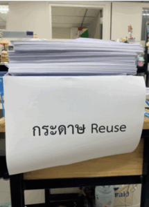 Rajamangala University of Technology Phra Nakhon has prioritized sustainable waste management practices, with a particular focus on reducing wastepaper usage. In response to environmental concerns, the university has introduced several initiatives aimed at minimizing paper consumption and fostering a more sustainable working culture. These include organized activities to encourage the reuse of one-sided printed paper, which are actively practiced by both students and staff. This initiative has helped cultivate greater environmental awareness and responsibility within the campus community.